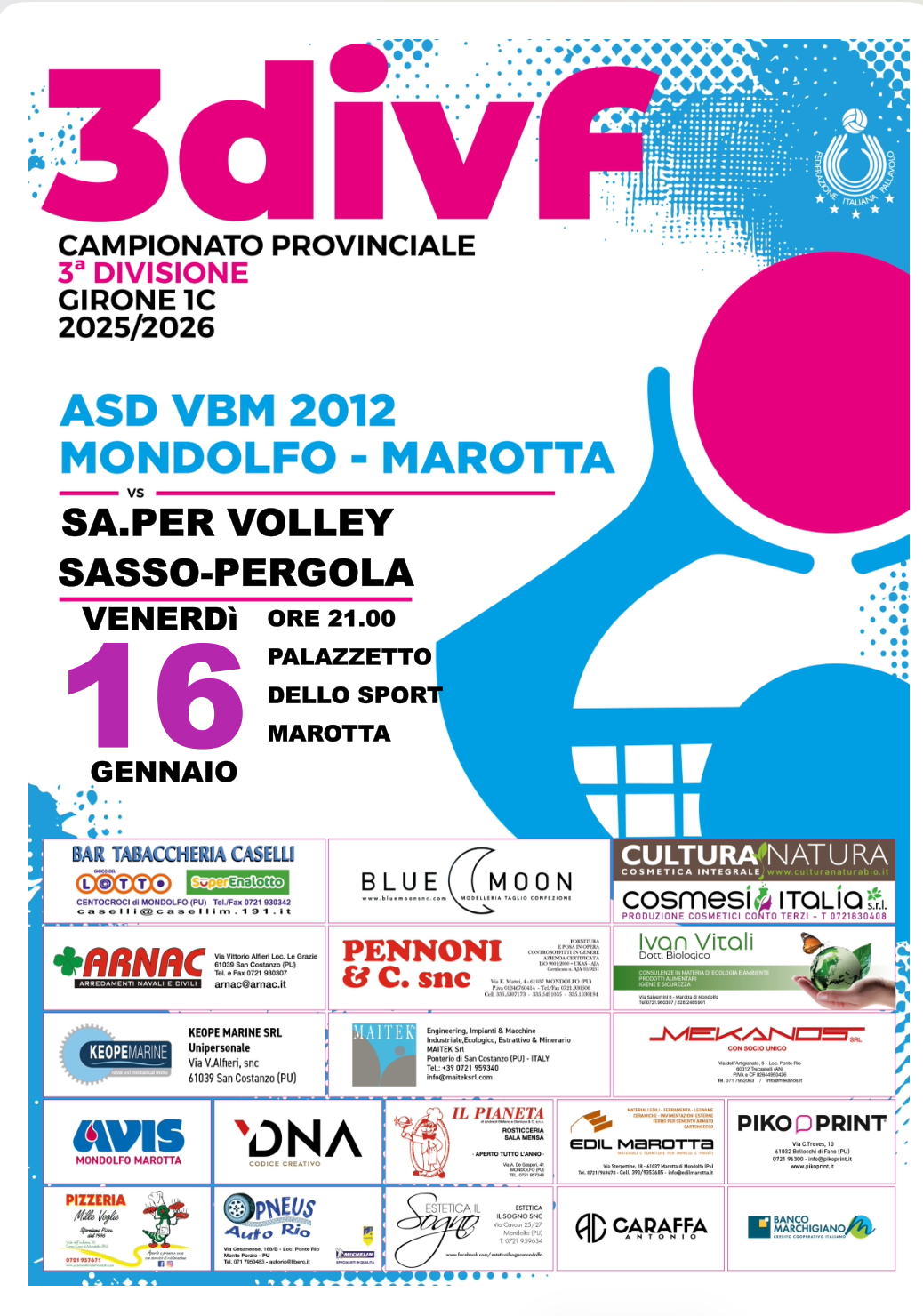 - Mini Volley S3: una festa di Natale di sport, sorrisi e condivisione al Palazzetto di MarottaIl Palazzetto di Marotta si è colorato di azzurro, sorrisi ed entusiasmo in occasione della festa di Natale del Mini Volley S3 della Volleyball Mondolfo Marotta.Una giornata speciale, pensata… Leggi tutto: Mini Volley S3: una festa di Natale di sport, sorrisi e condivisione al Palazzetto di Marotta